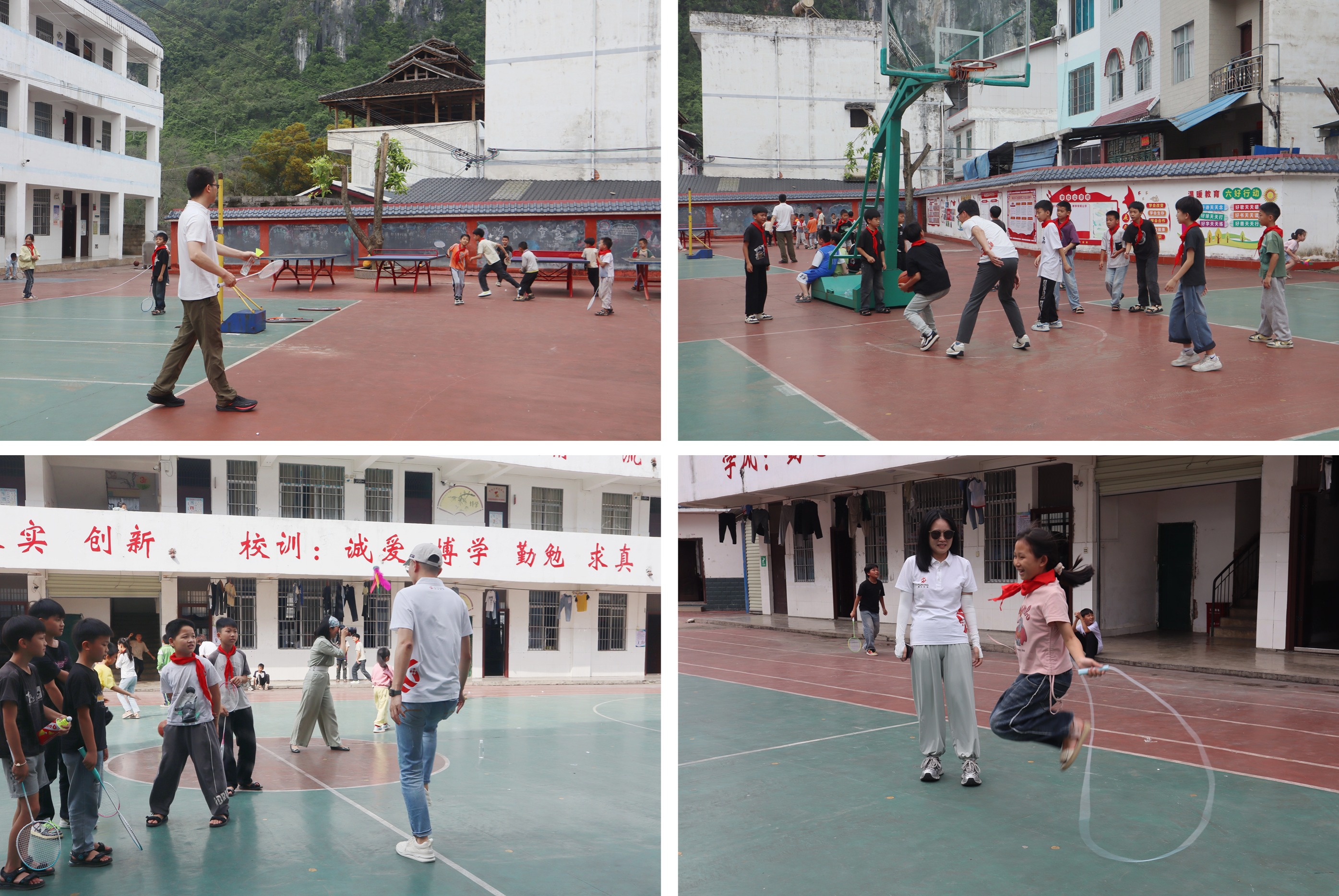 舞臺(tái)上,孩子們載歌載舞,用最純真的方式歡迎遠(yuǎn)道而來(lái)的我們;操場(chǎng)上,團(tuán)隊(duì)成員與孩子們一起打羽毛球、打籃球、踢毽子、跳繩等,歡笑聲在山間回蕩。一次次擊掌,一聲聲歡呼,是彼此心與心之間最自然的連結(jié)。